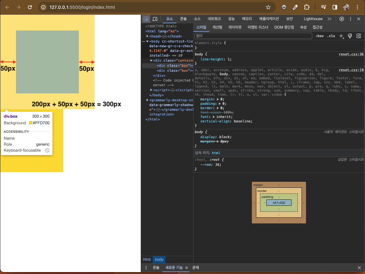 속성 : (요소의 크기가 늘어남) 내부 여백은 추가되는 것이기에 그 만큼의 요소 크기가 늘어난다.