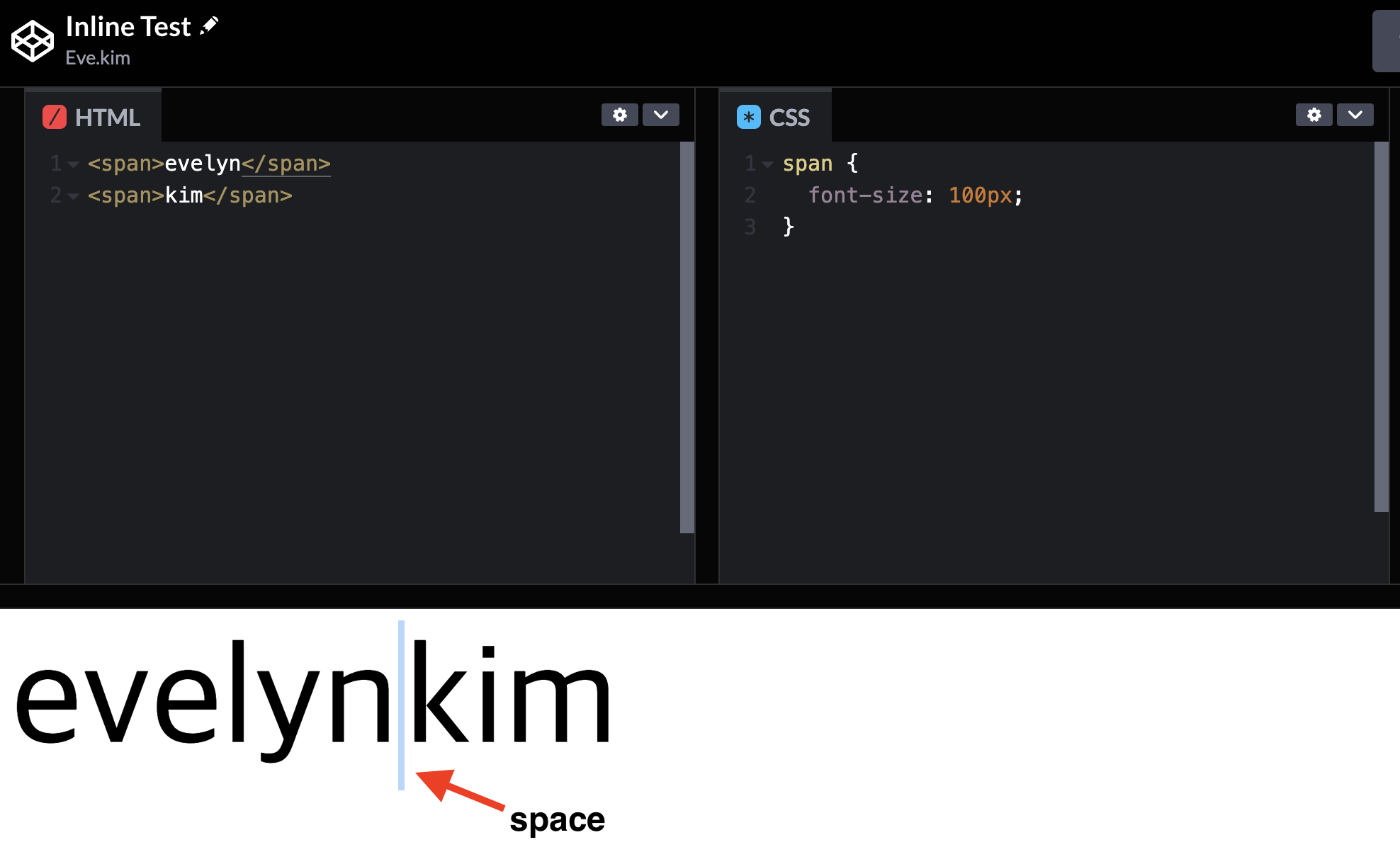 <div style=font-size:100px;>Evelyn kim</div> <!-- 인라인 방식 -->