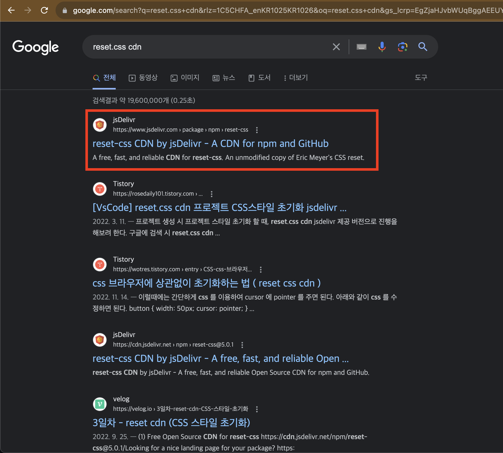 구글 검색창에 'reset.css cdn' 입력한다.