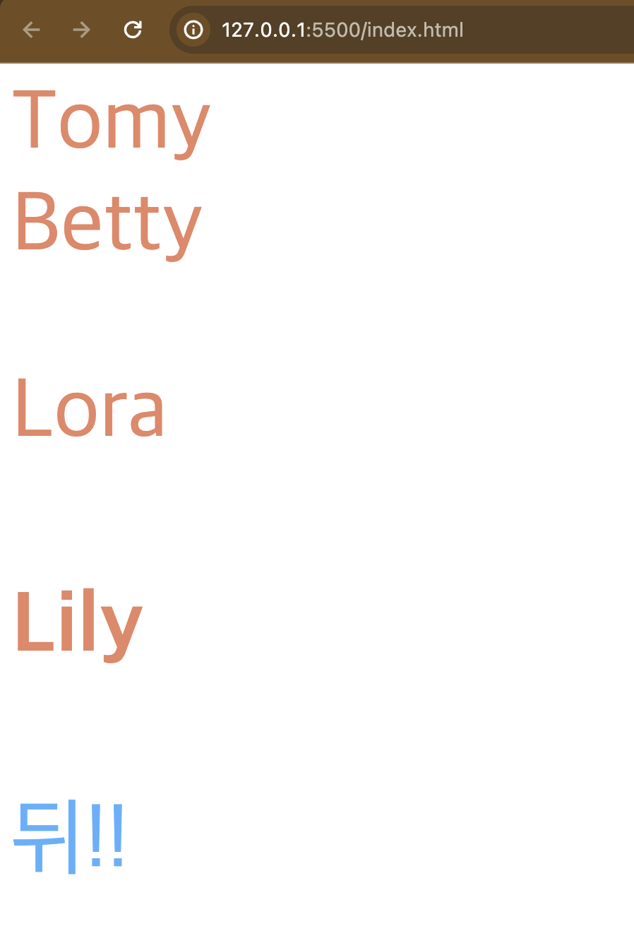 ** 주의 : 태그 선택자는 맨 앞에 작성해야 컴퓨터가 태그 선택자 임을 인식할 수 있다.