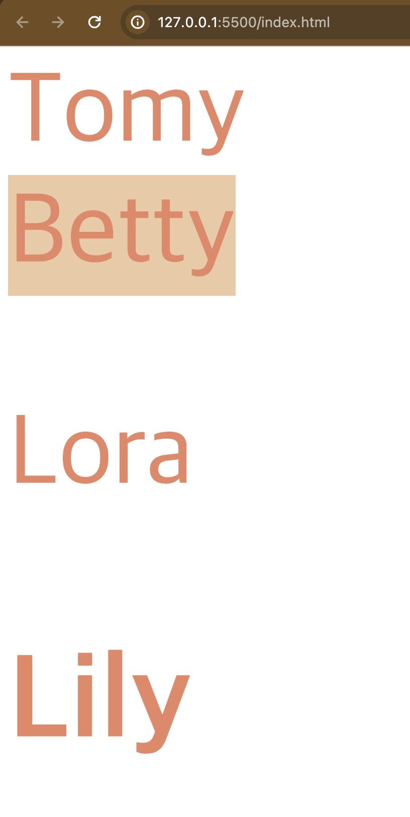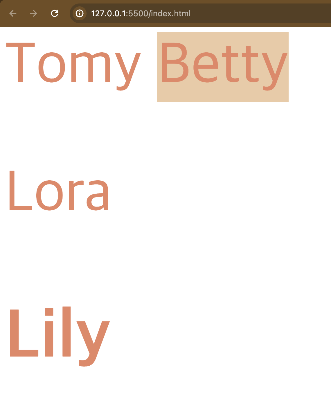 :nth-child 3번째 자식요소를 선택해야 (예시1)과 동일하게 'Betty'를 동일하게 선택 가능하다.(예시2)