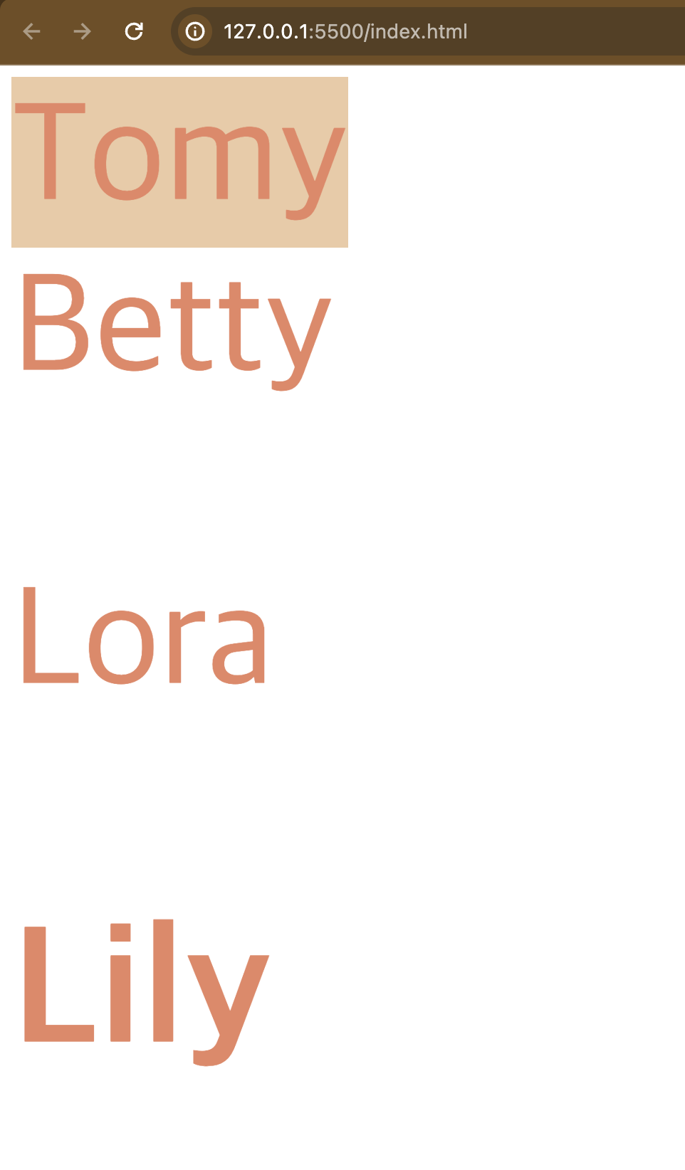<li class="name">Tom</li> <!-- .name 해당되는 하위 선택자 -->