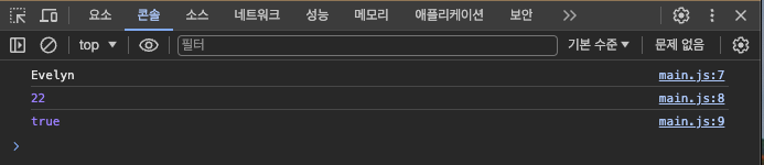 let myName = "Evelyn"; // myName이라는 변수에 "Evelyn"이라는 문자 데이터를 할당 한다.